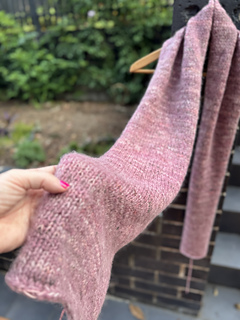 I held three strands of yarn together (2 strands of ACM and 1 strand of All Rounder) throughout the whole project.