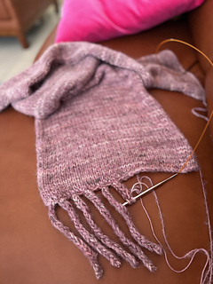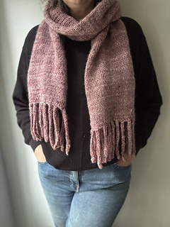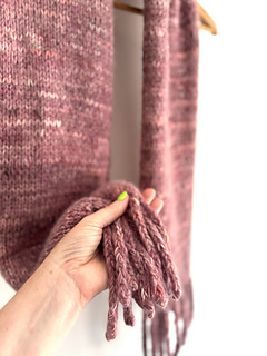 A recent trip to Amsterdam had me becoming very obsessed with a style of wrap/shawl I was seeing everyone wear: a chunky stockinette fabric with a tentacle-like fringe. I don’t usually jump on fashion bandwagons, but I was very taken with the mix of classic simplicity and a fun, slightly weird embellishment. I knew it would be easy to make AND wear!