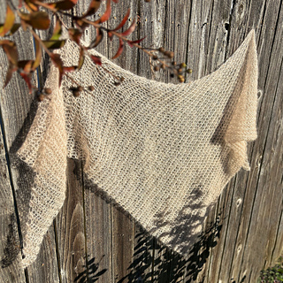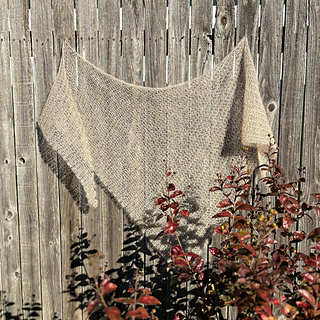 One skein (230 yds / 210 m) makes a small triangular shawlette or scarf, while two skeins create a full-size shawl like the one shown here.