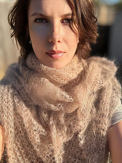 Soft as a cloud and light as air, this mohair crochet shawl feels almost weightless when you wear it. The simple triangle wrap works up quickly, yet the finished piece looks delicate and elegant.
