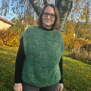 The vest can be knitted in a marled effect by combining three different colors (two strands of each), which gives a lively, unique look. It can also be knitted in a single solid color for a more classic style, or in scraps of mohair to create your own playful version. The design is versatile and fun – wear it as a top on bare skin, or layer it over a shirt or blouse as a vest. The pattern contains 5 different sizes - Guiding measurements are listed below. See Mohair Crush demonstratedhere.