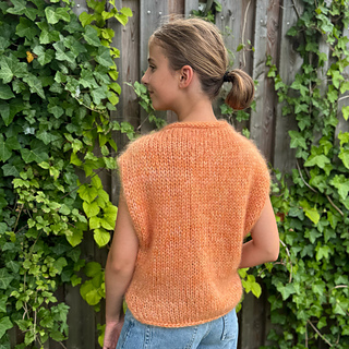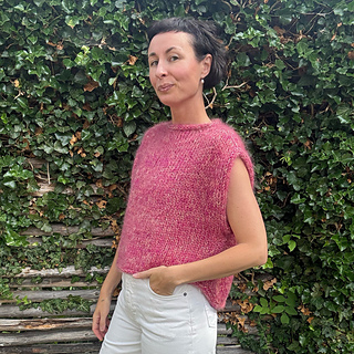 ‘Mohair Crush’ is a light and airy vest, worked top-down in stockinette stitch with six strands of mohair held together - creating a soft, luxurious fabric. The vest has a slightly oversized fit, making it both comfortable and stylish. It is beginner-friendly and quick to knit on US 15 (10 mm) needles.