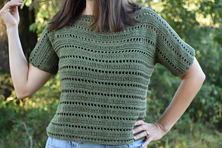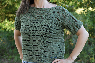 The Molovo T-Shirt pattern is written in American ENGLISH terms and measurements. It includes step by step written instructions and photos and size charts. Pattern includes sizes: Small, Medium, Large, XLarge, 2/3 XL, and 4/5 XL. This top is made using size 3 Lion Brand Coboo bamboo yarn.