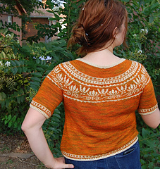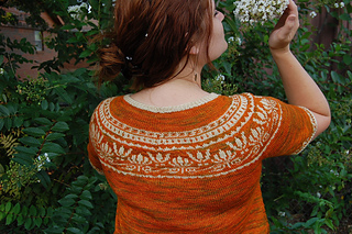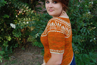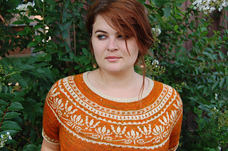 Named for the ancient herb used throughout mythology, Moly is a lightweight tee made from fingering yarn. The colorwork is inspired from the sketchbook of a dear friend to emulate budding blooms. The silhouette is loose and flared, meant for ease. Can be worn during hot summer months or layered as the seasons transition.