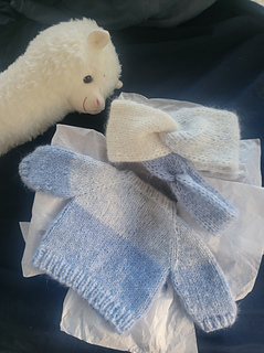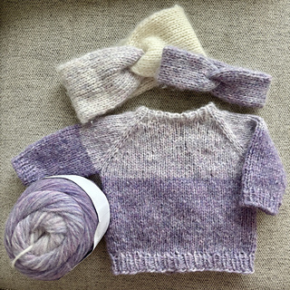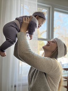 There are three pieces in the set: a baby sweater, a headband for mom, and a headband for baby. The raglan sweater is knit seamlessly in the round from the top down. The headbands are knit in double stockinette, an easy techinque that creates a double-thick, cozy fabric with a professional looking finish. The pattern includes line by line instructions for the double stockinette technique and for creating a stretchy tubular cast-on for the sweater.
