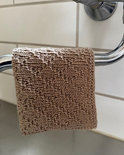 Den brune karklud er strikket i 100% Cotton 8/4 fra Søstrene Grene i farven #16-1210