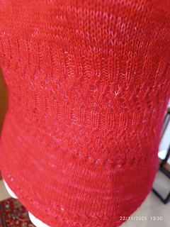 Mon Carmin Tee est un petit pull manches courtes, confectionné à partir d’une laine merinos que j’ai teinte, après avoir acheté du magnifique Mohair rouge à la ferme d’Amalthée pas très loin de Chiroubles.