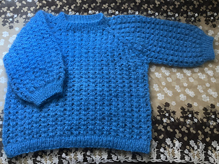 20 sts and 28 rnds = 4” / 10 cm - 1×1 ribbing of neck and cuffs