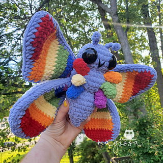 This pattern has been pattern tested and includes modifications for TWO different butterfly wing designs: Monarch and Blue Morpho . It also includes a Rainbow Wing Modification you can use to make Junie, the Rainbow Butterfly! There are lots of design choices you can make, so I hope that you feel empowered to make your own little kaleidoscope of butterflies in whatever colors and styles you choose!