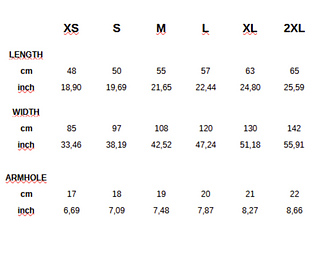 Yarn requirements for sizes XS / S / M / L / XL / 2XL: