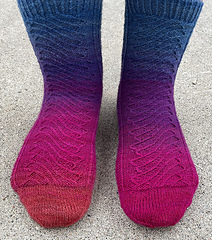 The pattern assumes familiarity with cabling and basic cuff-down sock construction techniques. It will go a lot faster if you know how to work cables without a cable needle - I have not included a tutorial for this in the pattern since there are a number of good ones, such as this one, already available. The cable pattern is currently provided only in charted form.