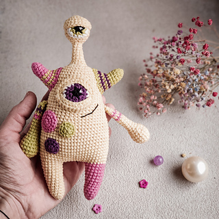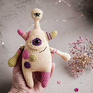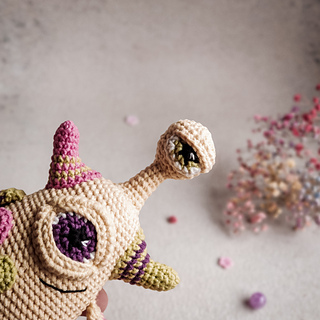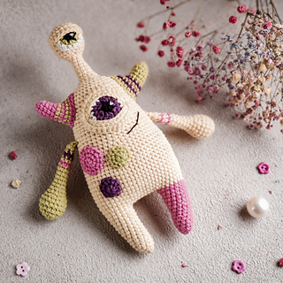 This crochet pattern monster includes 24 pages of detailed description of crochet, about 66 photos of the crochet process, and a list of materials.