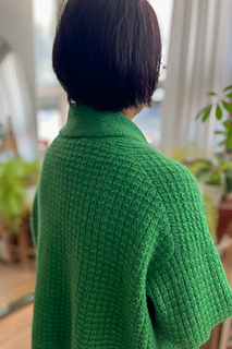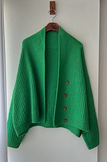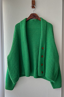 The Monun Cardigan is a top-down drop-shoulder design that creates a natural shoulder line and a relaxed silhouette. The wide shawl collar can be fastened or left open with buttons, combines practicality with style. “Monun” means “grid” or “square pattern” in Korean, reflecting the neat square textures created solely with knit and purl stitches—easy to knit yet adding a clean and modern touch to the overall design. With its generous oversized fit, it can be worn comfortably by anyone and layered easily, making it an ideal daily cardigan for autumn and winter.