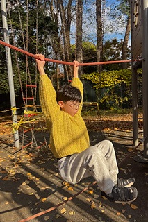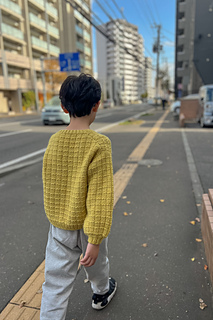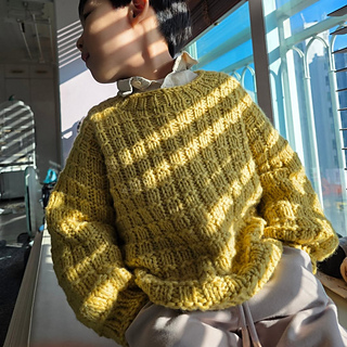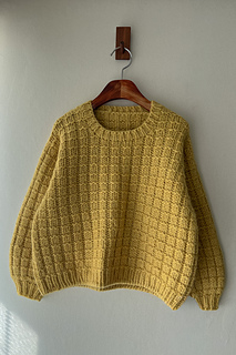 모눈이뇽 풀오버는 탑다운 드랍숄더 구조로, 자연스럽게 떨어지는 어깨선과 여유로운 실루엣이 특징입니다. 어깨에서부터 몸으로 이어지는 흐름이 부드럽고, 전체적으로 안정감 있는 핏을 만들어줍니다. “모눈” 이라는 이름처럼 겉뜨기와 안뜨기만으로 완성되는 네모무늬를 굵은 실과 바늘로 떠서 조금 더 귀엽고 포근한 볼륨감이 느껴지는 디자인이며, 특히 벌룬 소매로 마무리해 입체감과 귀여움을 더했습니다. 심플한 구조지만 뜰 때 손맛이 좋고, 짧은 시간 안에 완성할 수 있으면서도 완성도 높은 따뜻한 겨울 니트입니다.