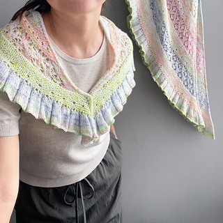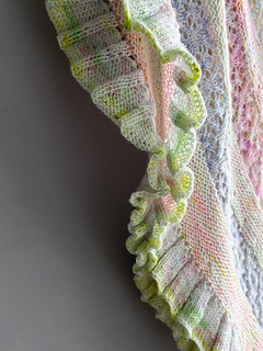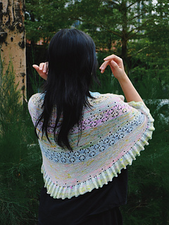 Instructions are written for the larger shawl, with a tip for knitting a mini version.