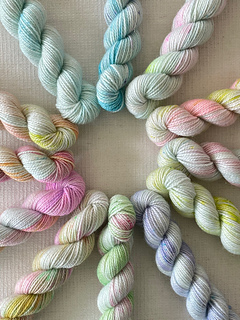 If you would like to replace the above mini-skein sets with other fingering weight yarns, refer to the following estimated yardage.