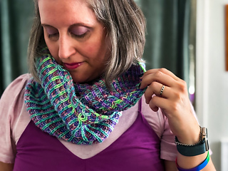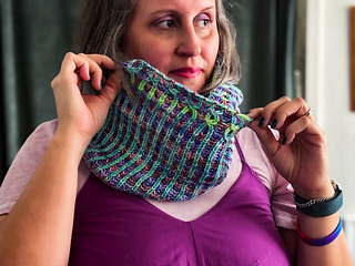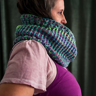 Moonlit Jellies : A delightfully glowing cowl, knit using two-color brioche with mock cables creating jellyfish swimming in the moonlit sea.