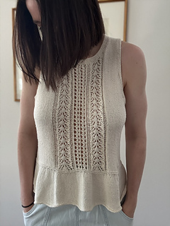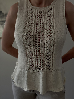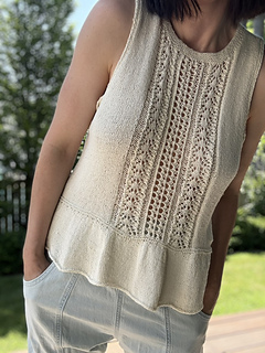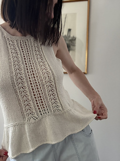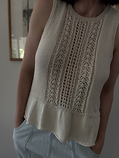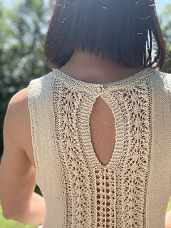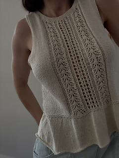 This relaxed-fitting top is a little bit boho, a little bit fairytale and a whole lot of joy! Inspired by June, the lunar month, full of blooms, it’s seamlessly constructed top down, then in the round from the underarm in classic stockinette on the sides and continuing the floral motif lace panels. It features a pretty keyhole back button closure and a whimsical ruffled hem, this romantic piece is perfect for the dreamer in all of us.