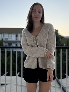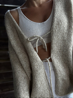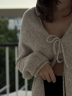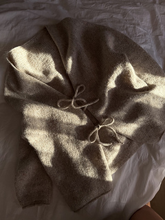 Knitting pattern for tie front MoonVeil Cardigan. the body is knit flat, the sleeves are made in the round (easy to adjust for flat knitting as well), slightly over-sized fit, adjustable body and sleeve length. Can be done with ties or without.