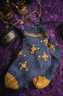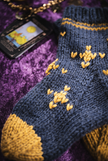 Meet The Moonwalker Socks, the second pattern in my Lion Brand Maker’s Card Collection inspired by The Moon tarot card. These thick, cushy slipper socks are your new best friend for lazy weekends and chilly mornings. Worked from the cuff down with a simple heel flap construction, they’re perfect for intermediate knitters ready to tackle their first sock project.