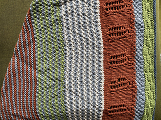 Each color has its moment to blend with another shade but also chance to stand alone to give a balanced color rich result. The shape is formed initially by a swift increase from 5 stitches by way of KFB increases and then at each end of the shawl.I have worked this construction for this shawl as an alternative to working a garter tab start. With its simple construction and repeated stitch patterns it makes for an enjoyable play with color and textures