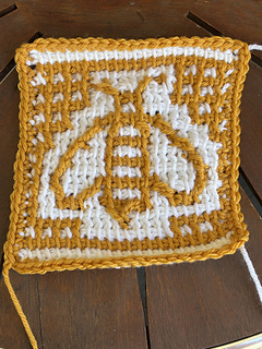 Whether you are advanced in Tunisian crochet or just a beginner, you can use this Tunisian crochet mosaic bee motif to add beautiful details to your projects.