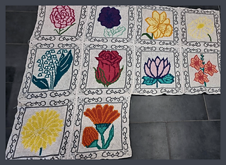 There will be 12 flowers that are generally considered to be the flowers of the month. The filigree border is integrated into the flowers and is the same for all flowers, giving a beautiful, uniform look. At the end there is a border for the entire blanket.