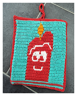 Mein Verbrauch: Kerzen-Topflappen - Motivfarbe Rot: Gesamt 33 g / Hintergrundfarbe champagner: 40 g (50g/125m). Ich häkelte mit einer 3 mm Häkelnadel.