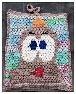 This pot holder is crocheted using the mosaic overlay technique. You will receive a 9-page PDF pattern with a short introduction to mosaic crocheting, an extra PDF file with colour charts/diagrams for the motifs, a short photo tutorial for the stitches used and written instructions for the first few rows to help you get started. This makes it suitable for ambitious beginners.