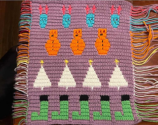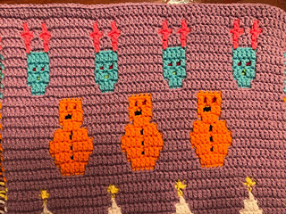 Worked in the overlay mosaic crochet method, with some tapestry mosaic crochet included…..but this is optional!