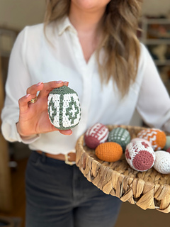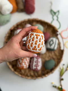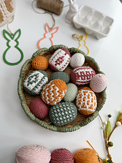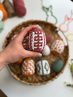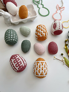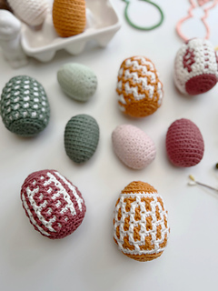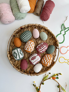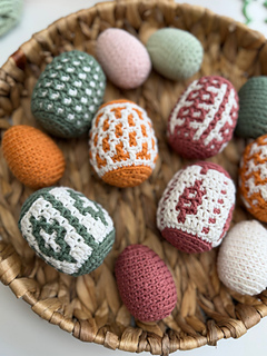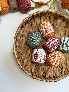 Each egg is worked using overlay mosaic crochet in the round, making them both fun to create and satisfying to finish.