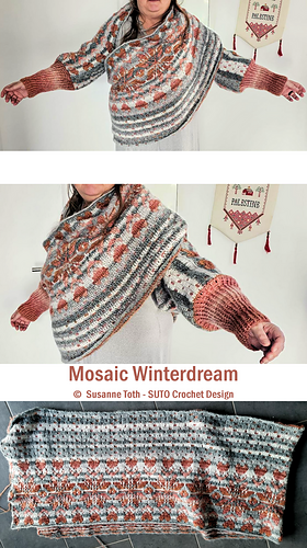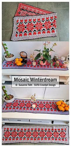 You will receive a 23-page PDF pattern with a short introduction to mosaic crochet, 2 extra PDF files with detailed colour charts/diagrams, a short photo tutorial for the stitches used and a complete written pattern for those who prefer written instructions. This makes it suitable for ambitious beginners.