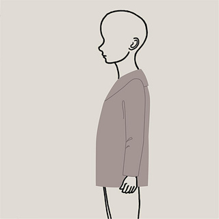 Nautical collar. Straight body profile, with optional waist shaping. Sloped shoulders, tapered raglan sleeves, adjustable hem length, front edges that meet at the centre to suit toggle closure.