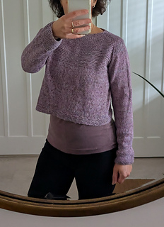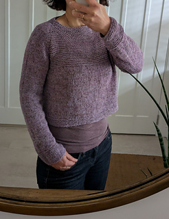 The pattern offers two length variation for this design, short as a trendy cropped sweater or standard length with an asymmetrical bottom hem.