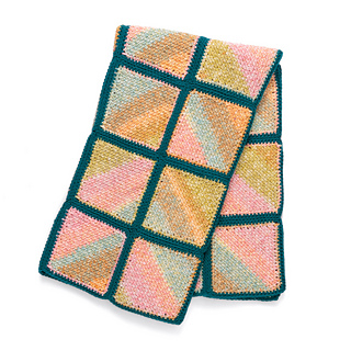 Add color and geometry to your décor with this cozy crochet blanket from Red Heart Super Saver Bitty Stripes and Red Heart Super Saver.