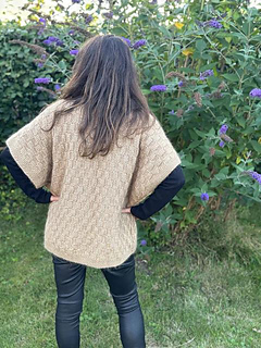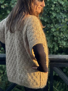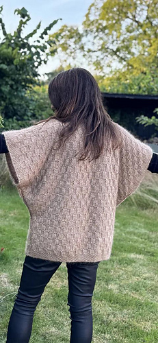 The design is knitted in one piece from sleeve to sleeve, with increases and decreases and only two seams that are sewn closed at the end.