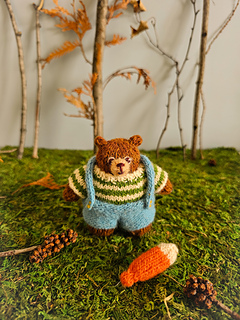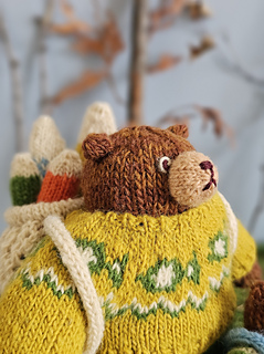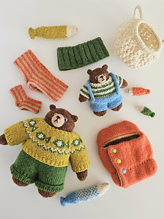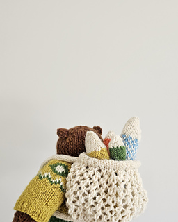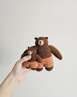 In this pattern, Daddy Bear and his little one head out for their usual fishing trip. Both of them are dressed in their cozy knits, ready for a slow and happy day outdoors. As evening approaches and the air turns chilly, Son Bear brings along his snug sleeping bag to stay warm under the stars.