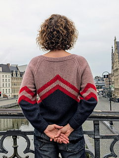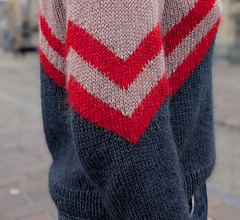 Sweater with chevron stripes and raglan sleeves. With a little experience, you can get started with this. With needles no. 5.