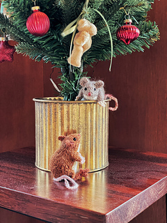 I prefer a fluffy and soft texture, so I usually hold mohair together with lace yarn when knitting the doll.However, using mohair is not required — feel free to choose yarns and colors that match your preferred look for the mouse.