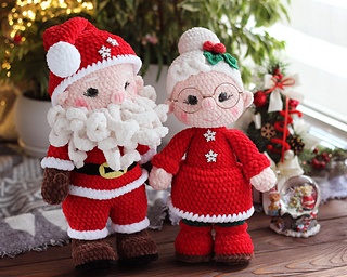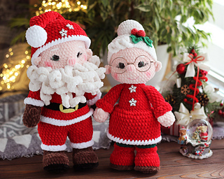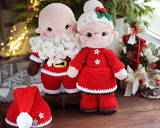 The pattern allows you to make a festive Santa Claus and Mrs. Claus — perfect for holiday décor, handmade gifts, or collectible amigurumi sets. This is a digital PDF download, not a finished toy.