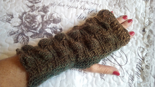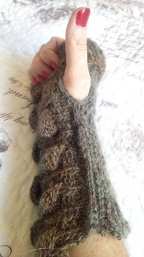 sono delle muffole o guanti senza dita che si lavorano in ferri di andata e ritorno e per i polsini si lavora in tondo con ferri circolari o con set di ferri a doppia punta.