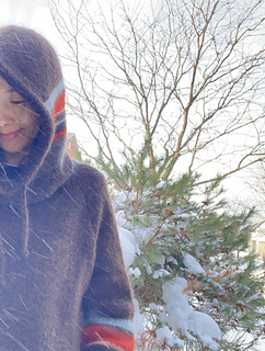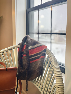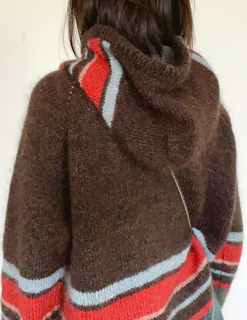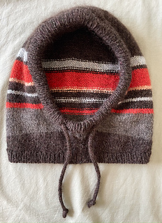 This hood is designed to be loose-fitting and is constructed from the top down.