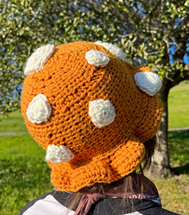 This project takes 2-3 hours. You will be using mostly half-double crochet stitches while working in the round, but will also use some single crochet and double crochet stitches. This pattern does require sewing in order to attach the mushroom spots to the hat. The finished hat is one-size-fits-most (Small-Large), with instructions on how to adjust it if you wear an XS or smaller or XL or larger. It is written in US terminology. This pattern does not have a gauge square. Rather, key measurements are included in case your project is smaller / bigger than the example at any pivotal point. You can increase / decrease rows as necessary.
