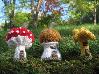 When you were younger did you ever play the game Mushroom or Fairy House? I certainly did! These adorable mushrooms are worked in-the-round on dpns. They are knit in one piece, which makes finishing a breeze; simply add a touch of embroidery for the spots, doors and windows (how to videos included).