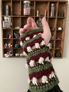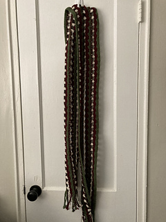 Pattern is written in US crochet terms. 5mm hook, Weight #4 yarn. You will need a yarn needle if you want to make the arm warmers, but it’s not needed for the scarf.