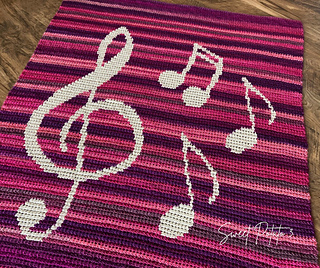 The Music Note & Treble Clef Crochet Blanket Pattern is a fun, unique, modern crochet blanket design. This design was created after the ever popular Music to My Soul Blankets, it was highly requested to represent all musicians and singers out there. The bold pop of the notes with a high contrasting color changes allows this design to be a stand out.