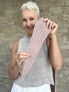 The sample knitted here is on 4.5mm needles and decreases/increases are every 6 brioche rows.