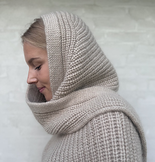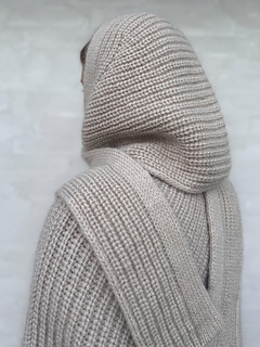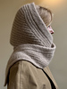 MY FLOW HOOD is worked in half fisherman’s rib and makes a versatile addition to your winter accessories as it can be used as a hood and as a scarf.