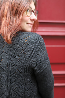 Mydas is worked from the top down, with an all over lace and ribbed texture. The neckline, as well as the shoulders, are worked back and forth, and shaped using short rows. Then the body is knit in the round. The sleeves are voluntarily work in stockinette stitch to let the motif fully glow.