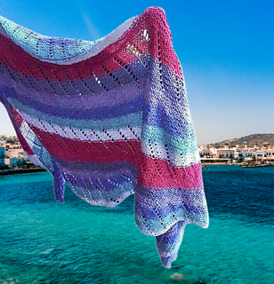 This shawl was inspired by the beautiful colors of the Greek Islands!